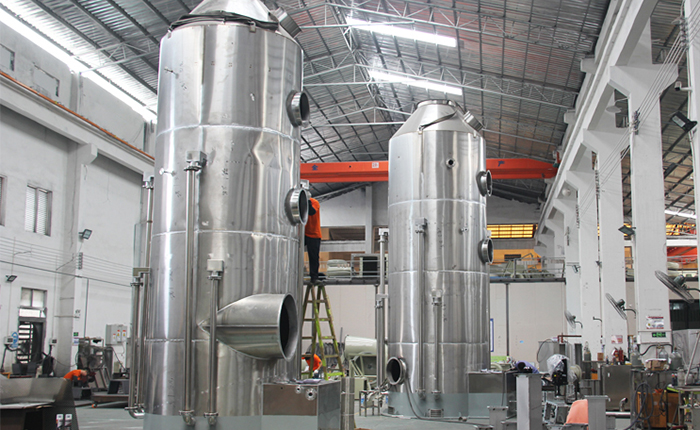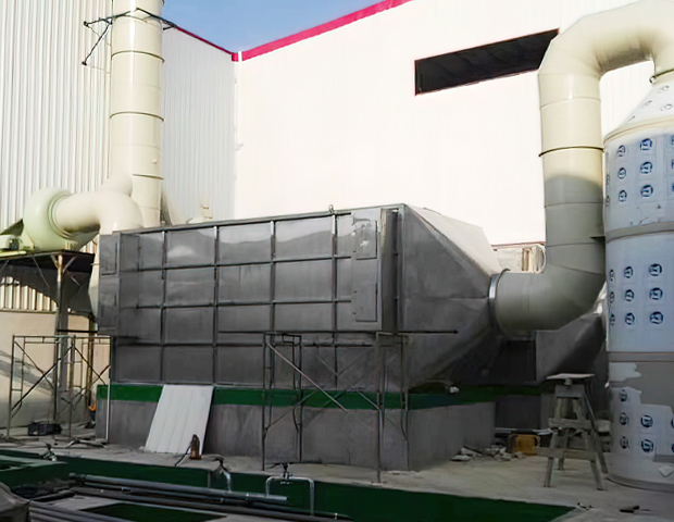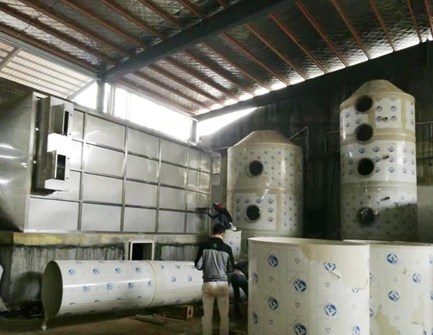 (1) 廢氣經集(jí)氣罩收集後(hòu)的廢(fèi)氣由風管引入噴淋塔,去除廢氣中黏性(xìng)的(de)顆(kē)粒物(wù),再通(tōng)過除霧器降低水(shuǐ)汽(qì)後進入下道工序。